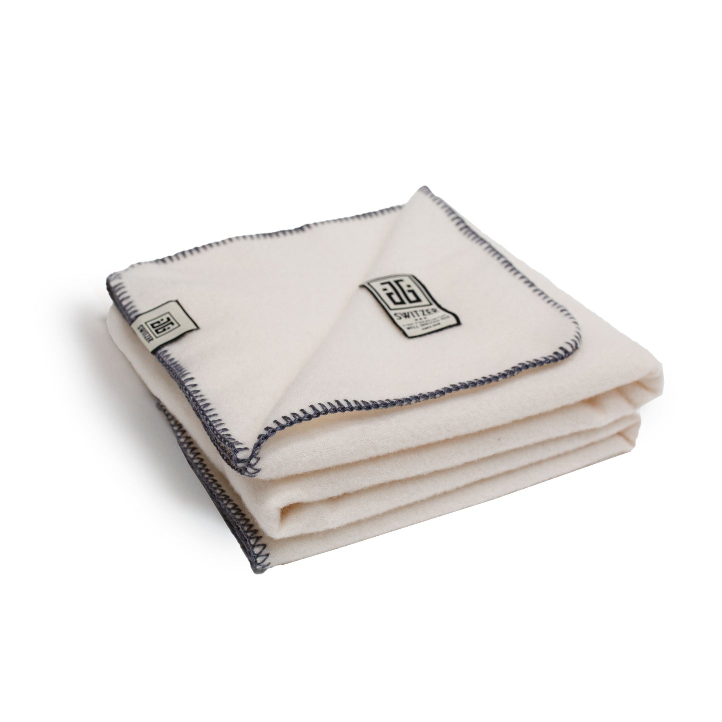 Baby Lambswool Blanket - White w/ Blue Stitch