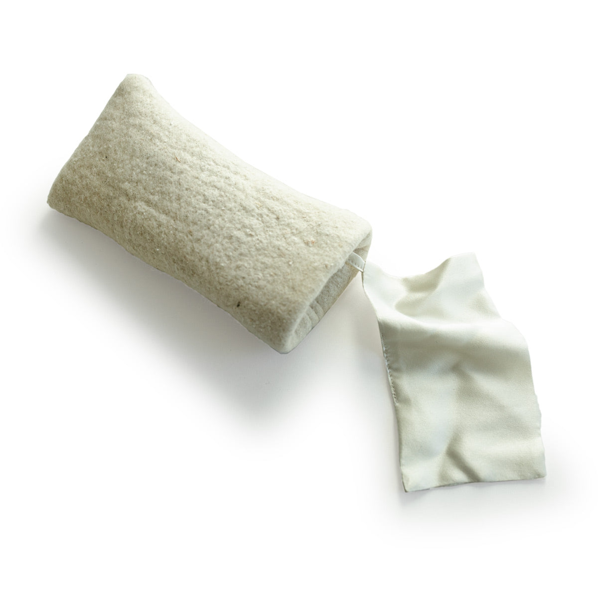 100% felted wool. 100% mulberry silk lining protective sleeve. Includes an attached sewn-in silk cleaning cloth so you'll never lose it. Manufactured at our workshop in Sonoma County, California.
